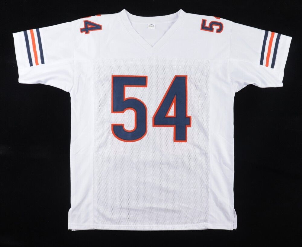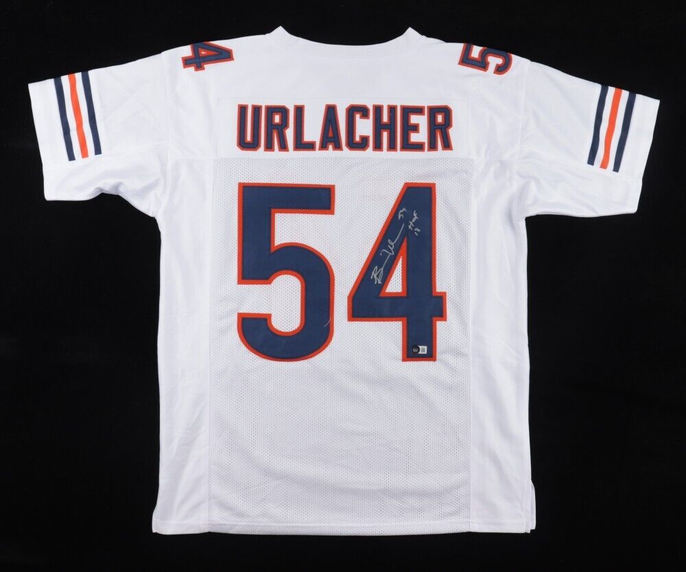 Custom on-field style jersey. Everything is sewn on, size XL. Hand-signed in silver paint pen by Brian Urlacher (HOF).
