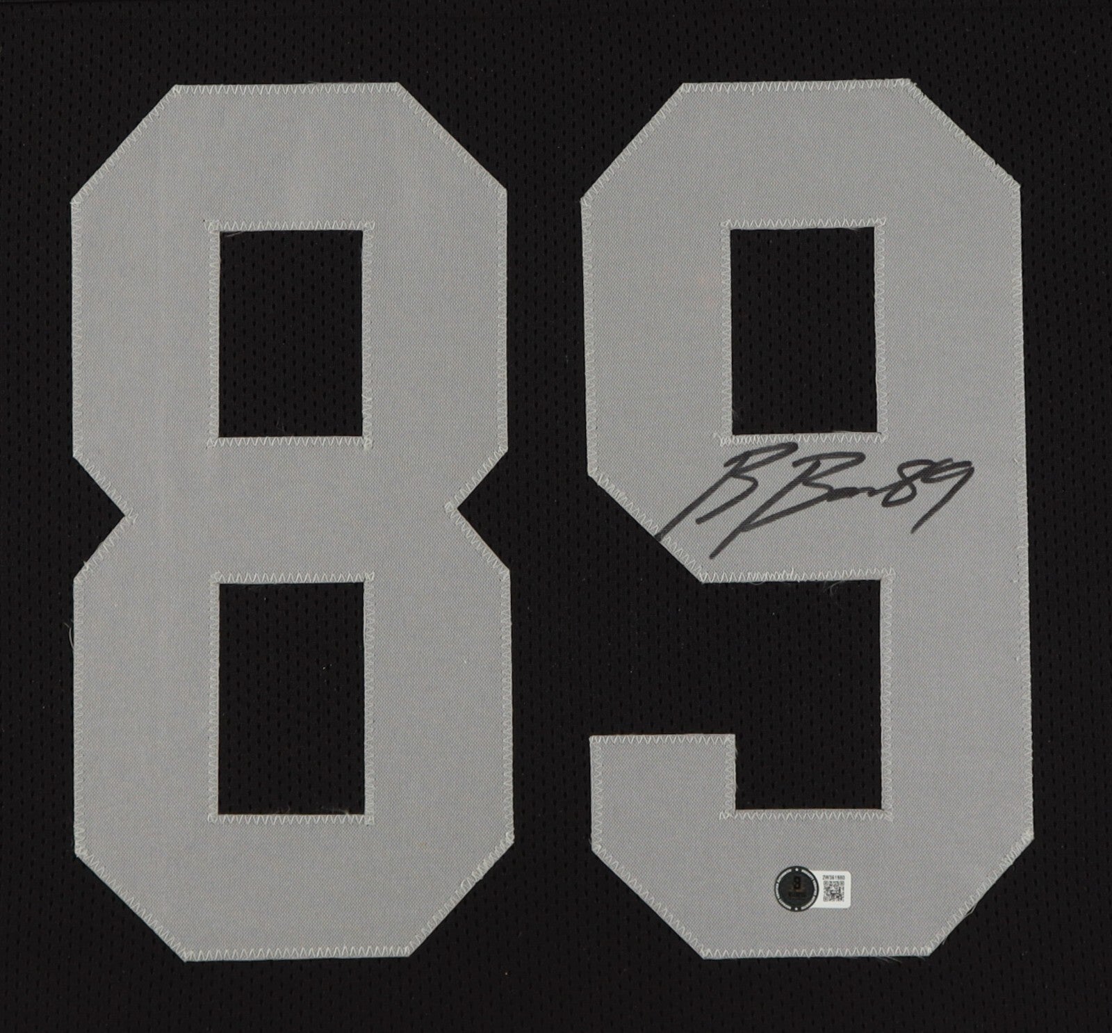 Custom frame measures approximately 36" x 44" in size and features a jersey that has been hand-signed by Brock Bowers (Las Vegas Raiders).