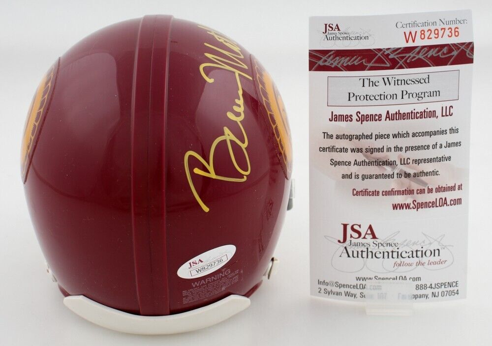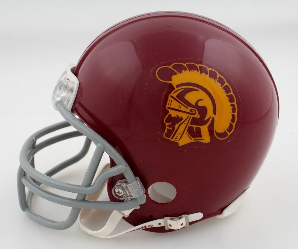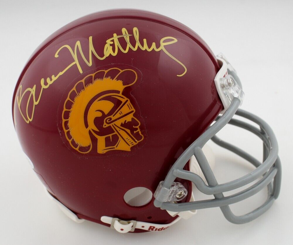 Riddell USC Trojans mini helmet has been hand-signed by Bruce Matthews.