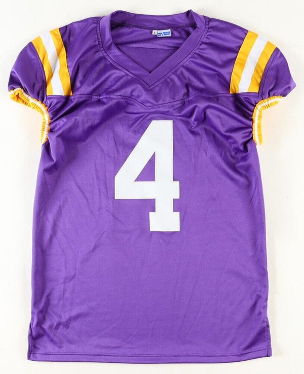 Custom on-field style jersey. Everything sewn on, size XL. Hand-signed by CJ Daniels (LSU Tigers). The autograph includes an official Beckett Authentication Services serially numbered hologram and QR Code Card...