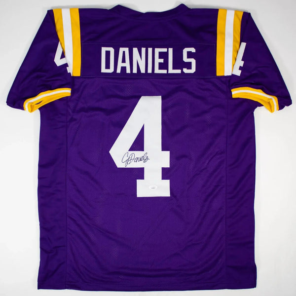 Custom on-field style jersey. Everything sewn on, size XL. Hand-signed by C J Daniels (LSU Tigers). This autograph is certified by James Spence Authentication (JSA) Witnessed Protection Program. That means...