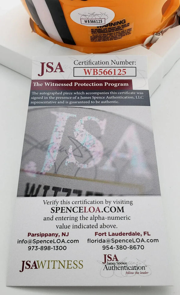 This autographed Riddell Speed mini helmet has been personally hand-signed by CJ Daniels of the LSU Tigers.  This autograph is certified by James Spence Authentication’s (JSA) Witnessed Protection Program. That...