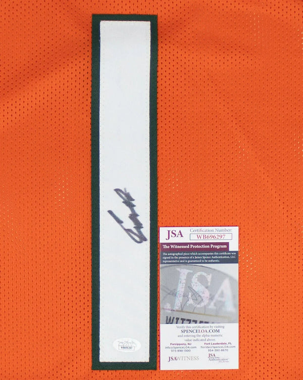 This autographed custom on-field style adult XL jersey has been personally hand-signed by Cam Ward of the Miami Hurricanes. This autograph is certified by James Spence Authentication (JSA) Witnessed Protection...