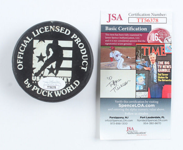 Team USA logo hockey puck. Hand-signed and inscribed by Cammi Granato (HOF). The lot / autograph(s) includes an official James Spence Authentication (JSA) hologram and matching COA for authenticity purposes.Authentication:...