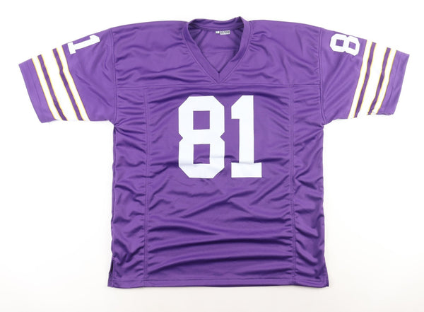 Custom on-field style jersey. Everything is sewn on, size XL. Hand-signed and inscribed in black felt-tip pen by Carl Eller (HOF). The lot / autograph(s) includes an official James Spence...