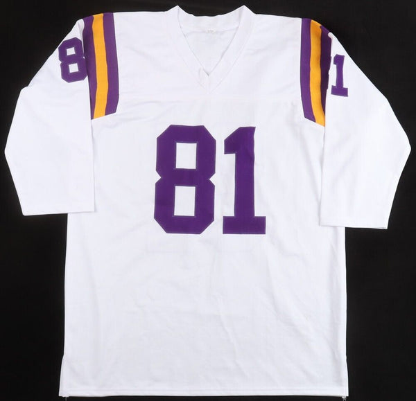 Custom on-field style jersey. Everything sewn on, size XL. Hand-signed and inscribed in silver paint pen by Carl Eller (HOF). The lot / autograph(s) includes an official James Spence Authentication...