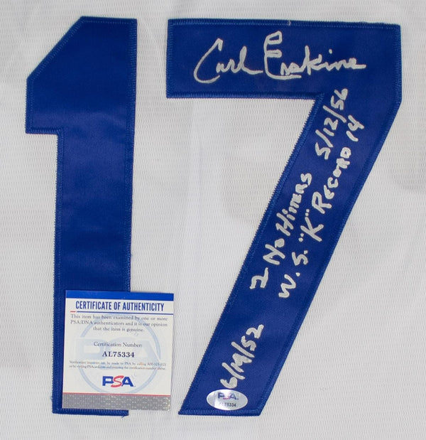Carl Erskine Signed Brooklyn Dodgers Jersey (PSA COA) 1955 World Champ Pitcher
