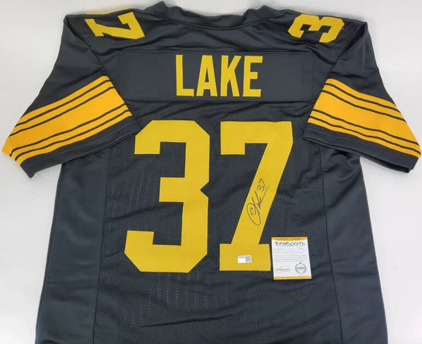 This autographed adult XL custom on-field style jersey has been personally hand-signed by Carnell Lake of the Pittsburgh Steelers. This autograph is certified by Total Sports Enterprises (TSE). It comes...