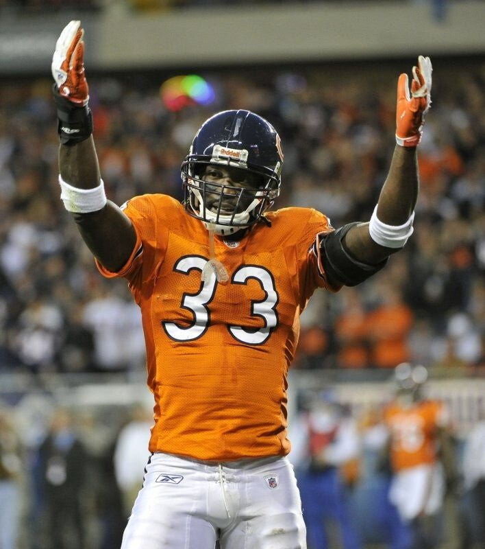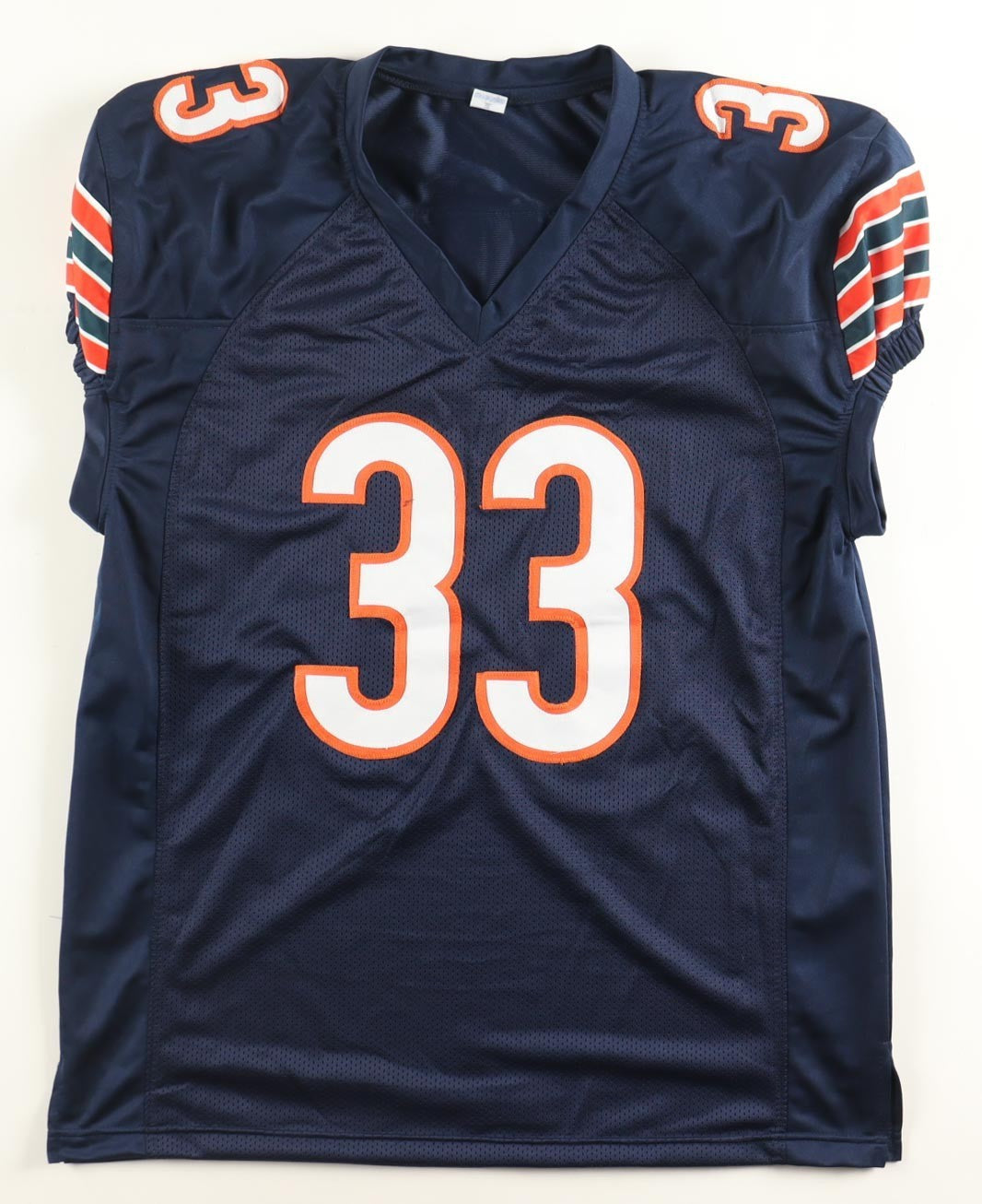 Custom on-field style jersey. Everything sewn on, size XL. Hand-signed by Charles Tillman.