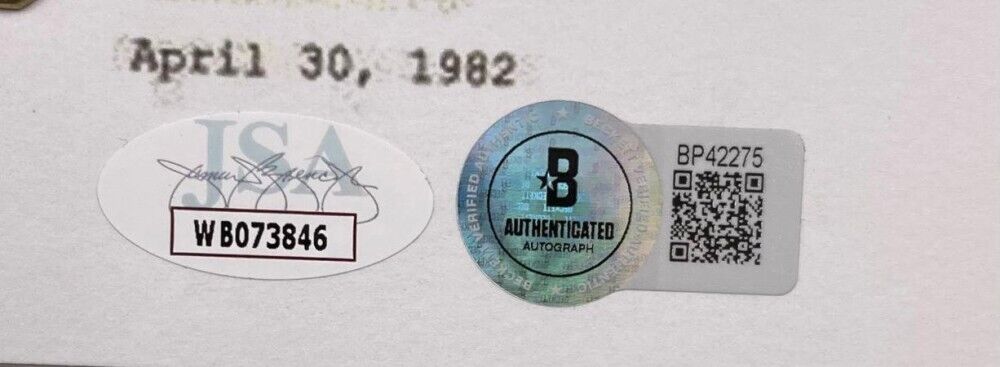 The autograph(s) includes an official James Spence Authentication (JSA) hologram and matching COA as well as an official Beckett Authentication Services serially numbered hologram with QR code card for authenticity purposes. The signing of this item was witnessed by JSA.