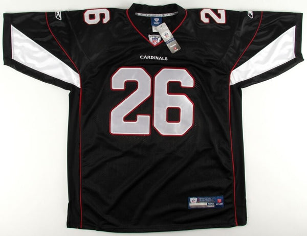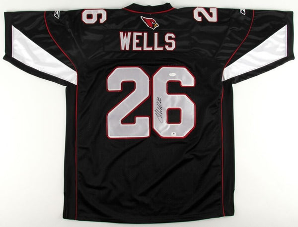 Official Reebok on-field style jersey. Everything is sewn on, size XL. Hand-signed in black felt-tip pen by Chris "Beanie" Wells. The lot / autograph(s) includes an official James Spence Authentication...