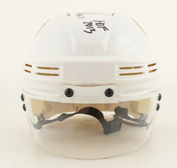 Chicago Blackhawks mini helmet has been hand-signed and inscribed by Chris Chelios (HOF).The autograph includes an official Beckett Authentication Services serially numbered hologram and QR Code Card for authenticity purposes....