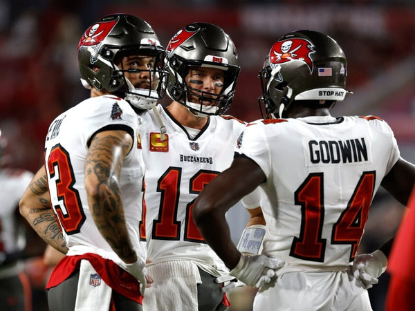 Custom on-field style jersey. Everything sewn on, size XL. Hand-signed in black felt-tip pen by Chris Godwin. The autograph includes an official James Spence Authentication (JSA) hologram and matching COA...