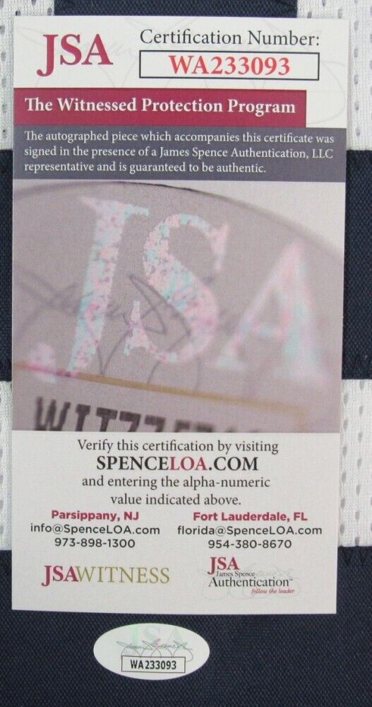 Custom on-field style jersey. Everything sewn on, size XL. Hand-signed and inscribed by Chuck Fusina. The lot / autograph(s) includes an official James Spence Authentication (JSA) hologram and matching COA...