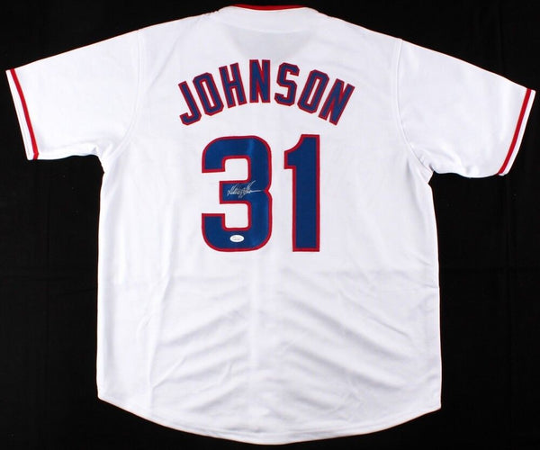 Custom on-field style jersey. Everything sewn on, size XL. Hand-signed in silver paint pen by Davey Johnson (Orioles, Braves, Cubs, Phillies, Mets mgr.86 World Series). The autograph includes an official...