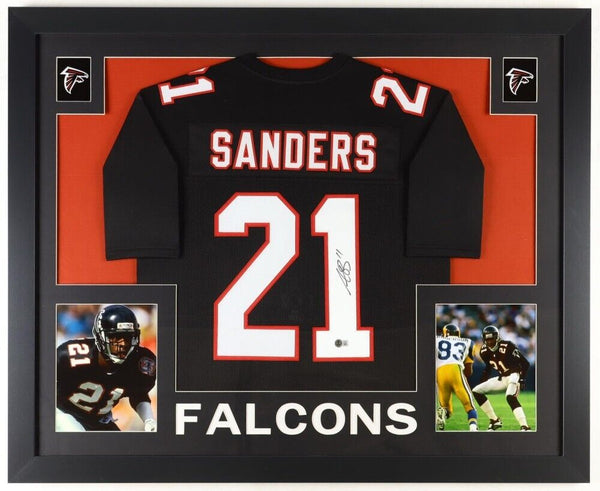 Deion Sanders Signed Atlanta Falcons 35x43 Framed Jersey (Beckett) Coach Prime