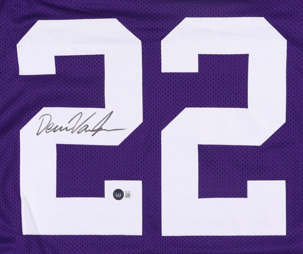 Custom on-field style jersey. Everything is sewn on, size XL. Hand-signed by Deuce Vaughn.