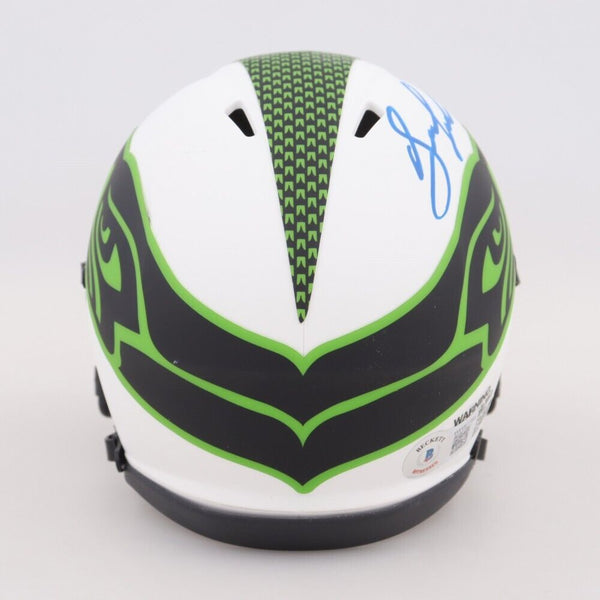 Riddell Seattle Seahawks Lunar Eclipse Alternate Speed mini helmet. Hand-signed by Drew Lock. The lot / autograph(s) includes an official Beckett Authentication Services serially numbered hologram for authenticity purposes. The...