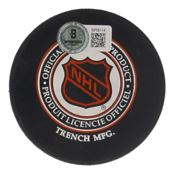 Detroit Red Wings logo hockey puck. Hand-signed by Frank Mahovlich (HOF). The autograph includes an official Beckett Authentication Services serially numbered hologram and QR Code card for authenticity purposes.Authentication: Beckett...