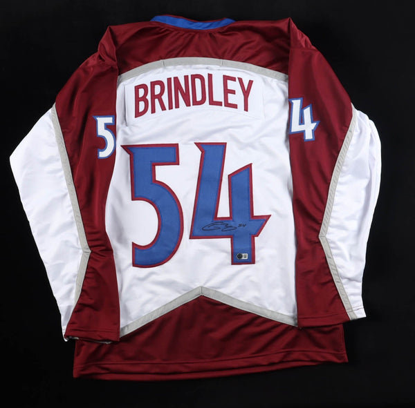 Custom on-ice style Colorado Avalanche jersey. Everything sewn on, size XL. Hand-signed by Gavin Brindley. The autograph includes an official Beckett Authentication Services serially numbered scannable hologram and QR Code...