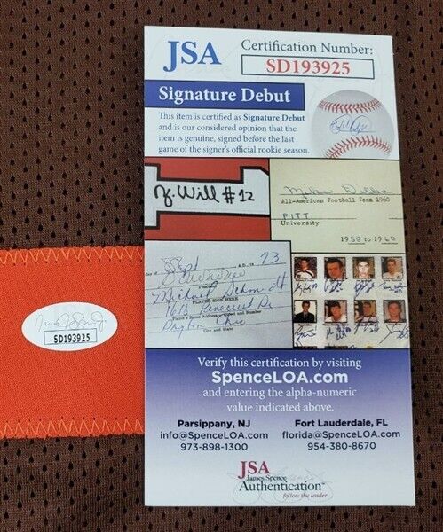 Custom on-field style jersey. Everything is sewn on, size XL. Hand-signed by Greg Newsome II.The autograph(s) includes an official James Spence Authentication (JSA) "Signature Debut" hologram and COA. "Signature Debut"...