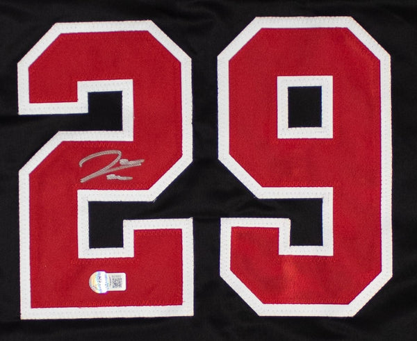 Custom on-field style jersey. Everything sewn on, size XL. Hand-signed in silver paint pen by James Wood. The autograph includes an official Beckett Authentication Services serially numbered scannable hologram and...
