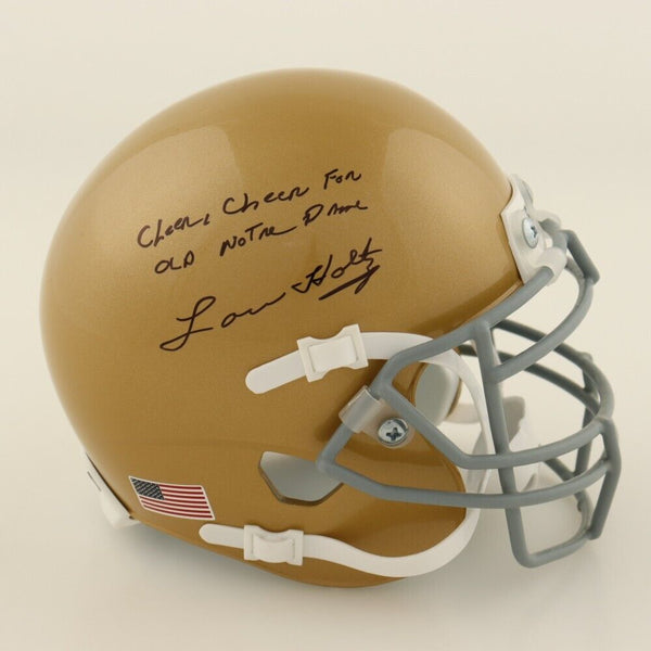 Lou Holtz Signed Fighting Irish Mini Helmet "Cheer, Cheer, For Old Notre Dame"