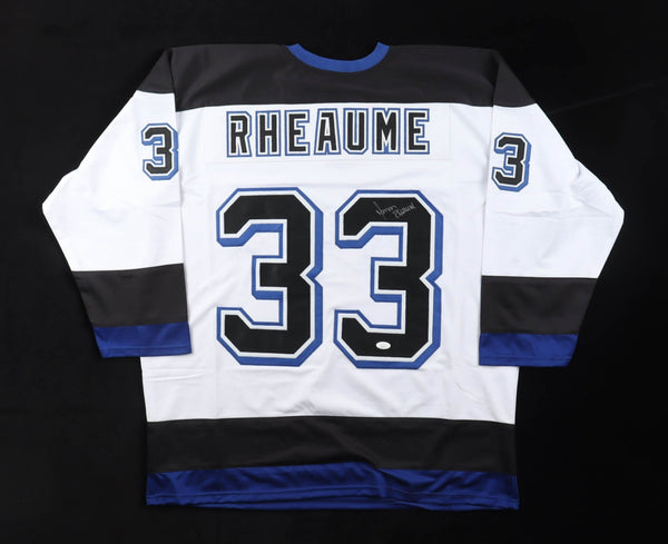 Custom on-ice style jersey. Everything sewn on, size XL. Hand-signed by Manon Rheaume. The autograph(s) includes an official James Spence Authentication (JSA) hologram and matching COA for authenticity purposes.Authentication: JSA...
