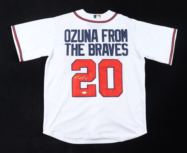 Nike jersey. Everything sewn on, size adult XL. Hand-signed by Marcell Ozuna. NORCROSS, Ga. — After being accused of driving under the influence, Atlanta Braves outfielder Marcell Ozuna will have to...