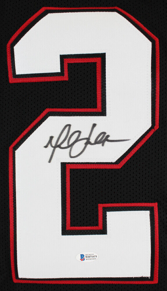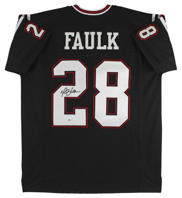 Custom on-field style jersey. Everything is sewn on, size XL. Hand-signed by Marshall Faulk (HOF). The lot / autograph(s) includes an official Beckett Authentication Services serially-numbered hologram and matching COA...