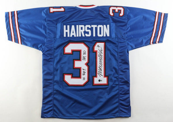 Custom on-field style jersey. Everything sewn on, size XL. Hand-signed and inscribed by Maxwell Hairston. The autograph includes an official Beckett Authentication Services serially numbered scannable hologram and QR Code...