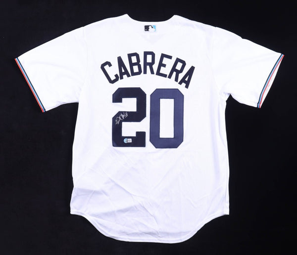 Nike replica jersey, everything pressed on, size adult Medium. Hand-signed by Miguel Cabrera. (Florida Marlins, Detroit Tigers)The autograph includes an official Beckett Authentication Services serially numbered hologram and QR Code...
