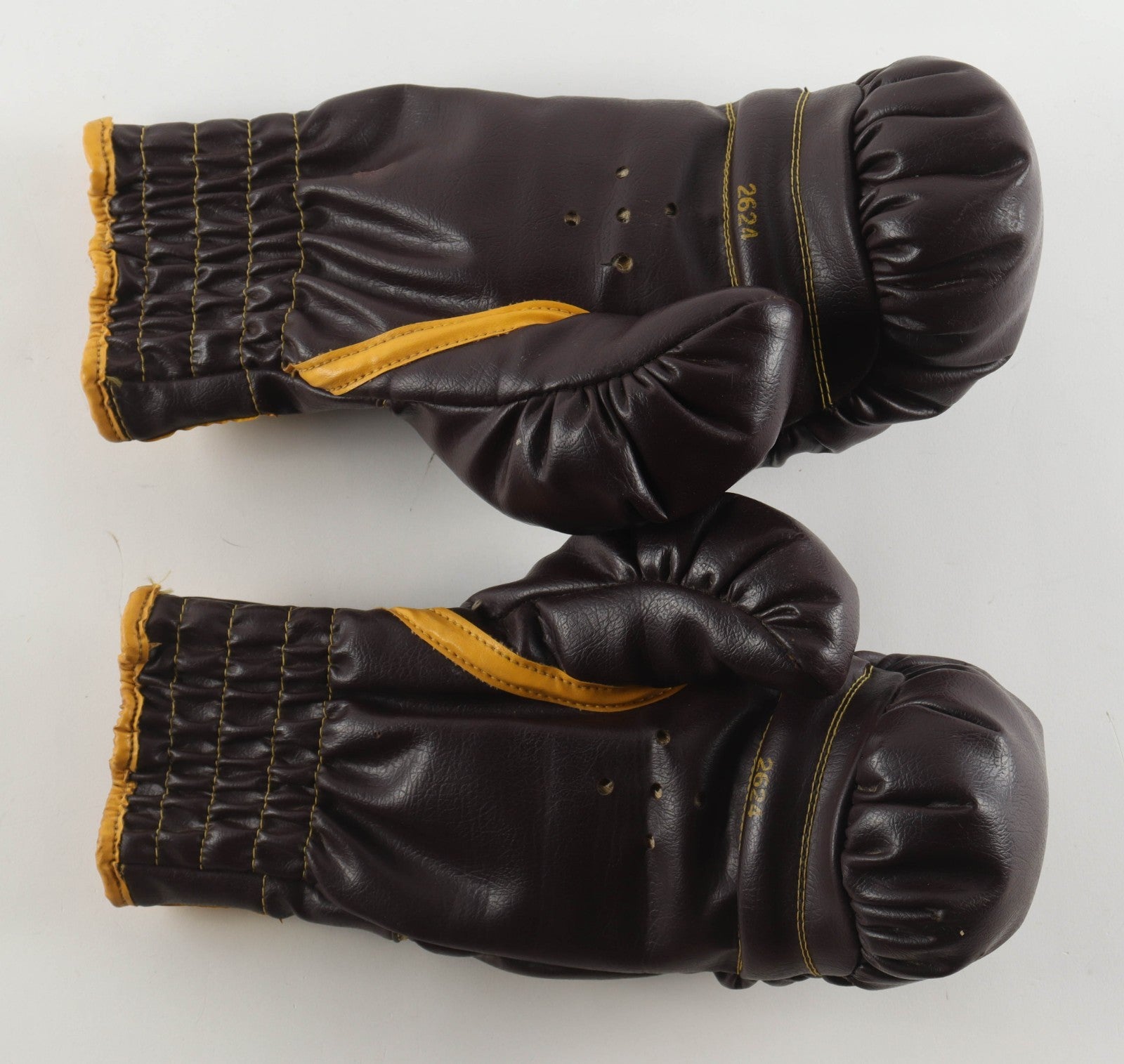 Set of (2) vintage Everlast brown leather boxing gloves, with one hand-signed by Mike Tyson (HOF).