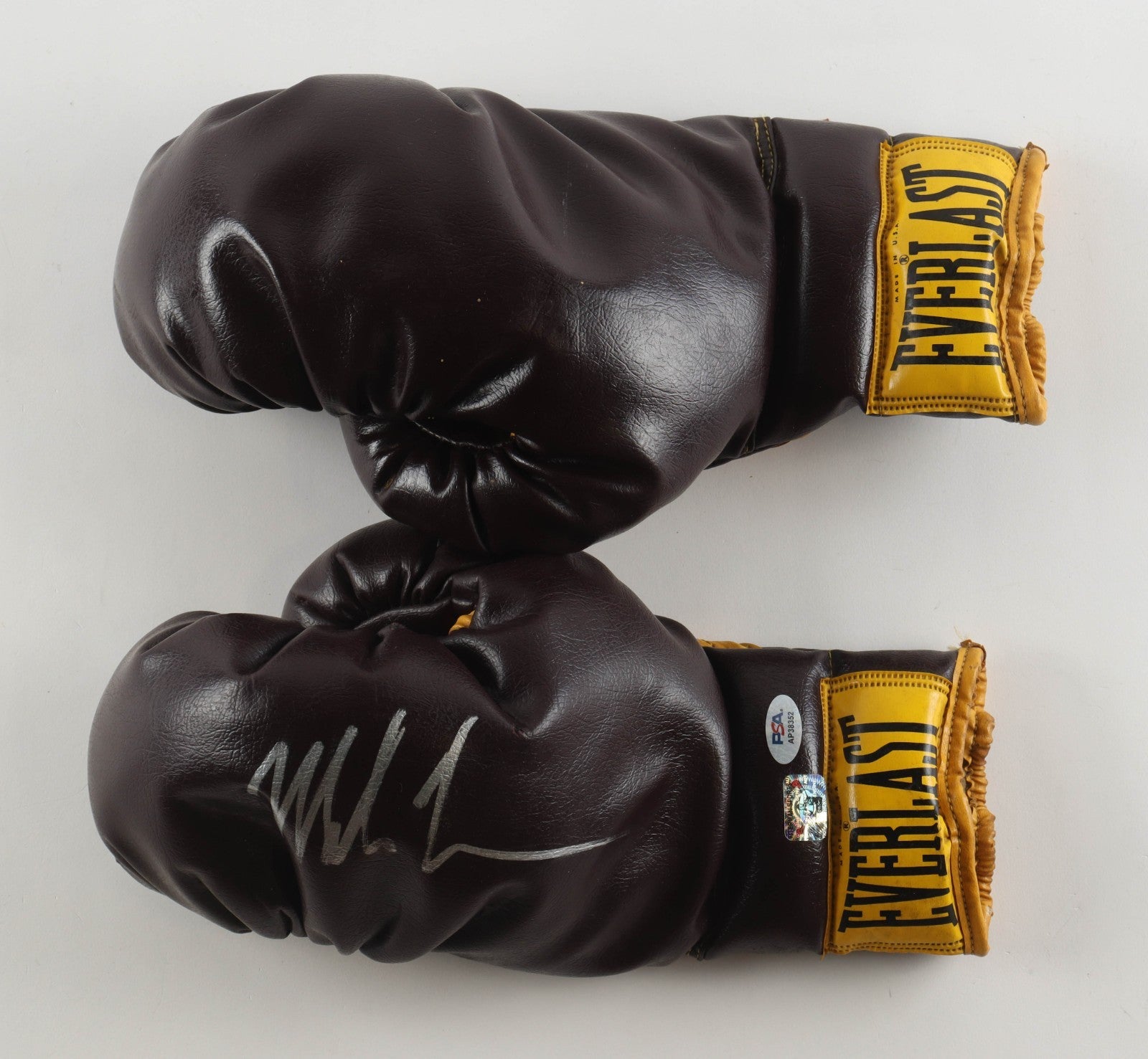 Mike Tyson Signed Set Of (2) Everlast Brown Leather Boxing Gloves (Tyson & PSA)