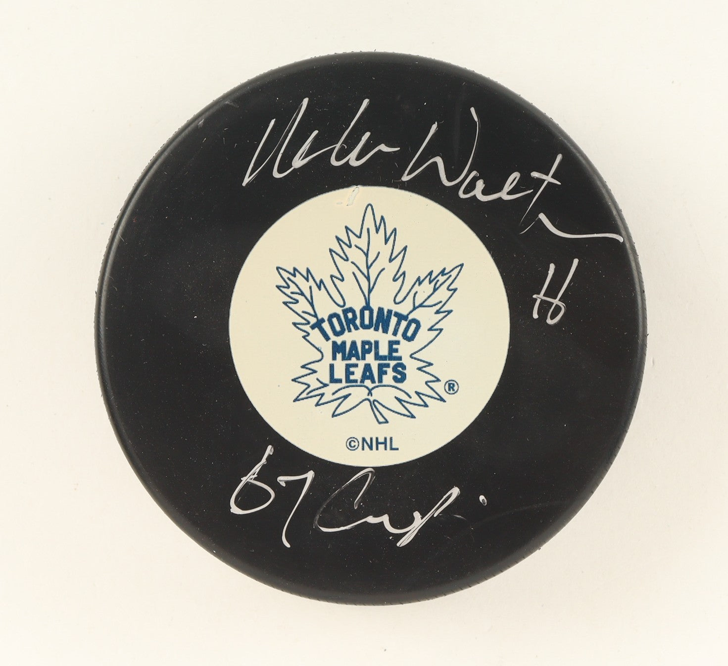 Toronto Maple Leafs Logo Hockey Puck. Hand-signed and inscribed by Mike Walton.