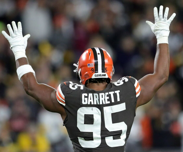 Myles Garrett Signed Cleveland Browns 35"x 43" Framed Jersey (Beckett) Def End