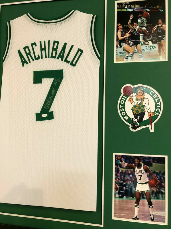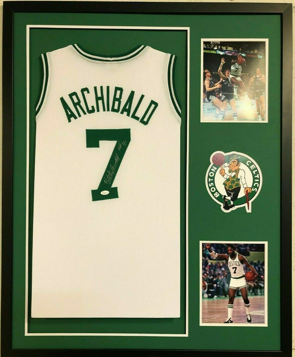 Nate Archibald Signed Boston Celtics 34x42 Framed Jersey (JSA COA) 1981 Champs