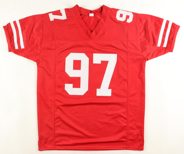 Custom on-field style jersey. Everything is sewn on, size XL. Has been hand-signed in black felt-tip pen by Nick Bosa. The lot / autograph(s) includes an official Beckett Authentication Services...