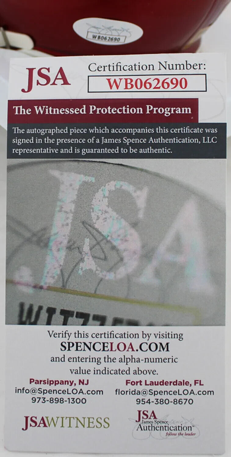 This autograph is certified by James Spence Authentication’s (JSA) Witnessed Protection Program. That means that a JSA representative was present when this item was signed. It comes with the numbered hologram and matching Certificate of Authenticity.