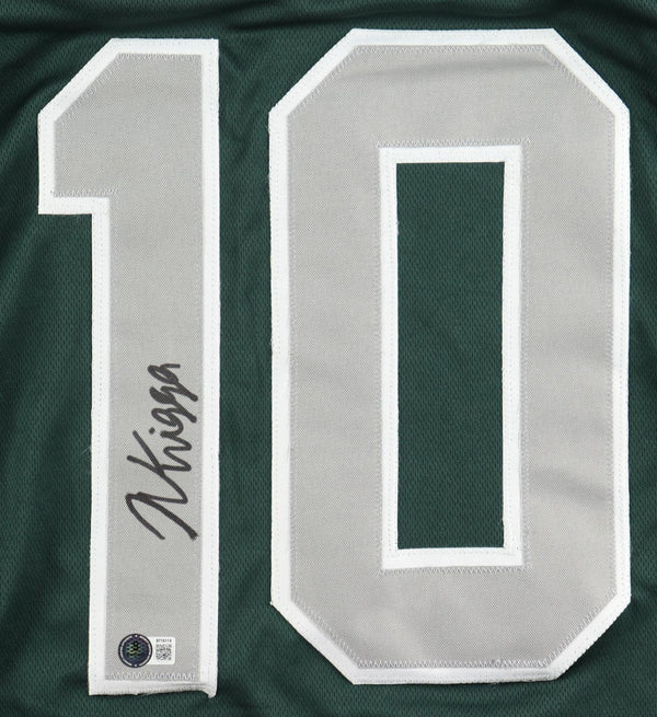 Custom on-field style jersey with everything sewn on, size XL. Jersey has been hand-signed by Noah Knigga. Knigga and his family clarified their surname is pronounced kuh-nay-ga. The autograph includes an official Beckett...