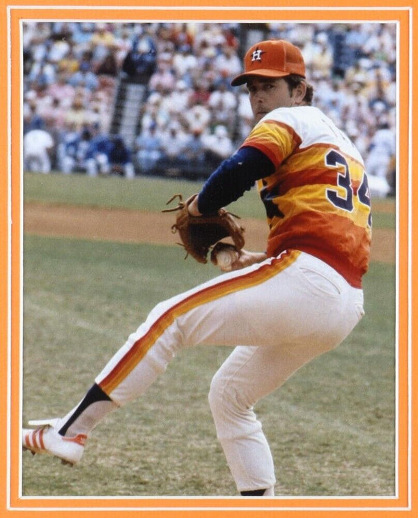 Custom frame measures approximately 35" x 43" in size and features a Houston Astros Throwback jersey hand-signed and 3 times inscribed by Nolan Ryan (HOF).The autograph(s) includes an official PSA/DNA...