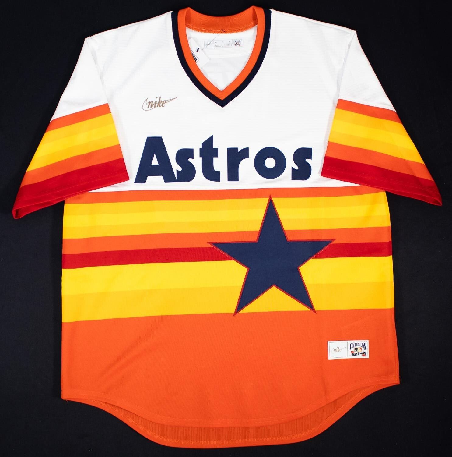 This autographed Nike jersey has been personally hand-signed by Nolan Ryan of the Houston Astros.