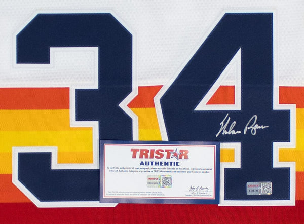 This autographed Nike jersey has been personally hand-signed by Nolan Ryan of the Houston Astros.This autograph is certified by Tristar. It comes with the numbered hologram which can be verified...