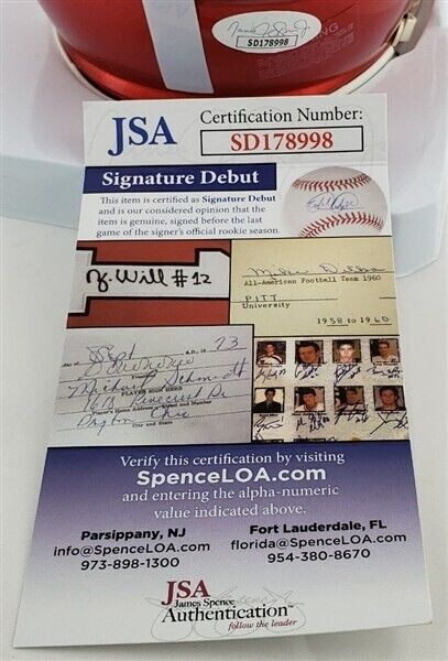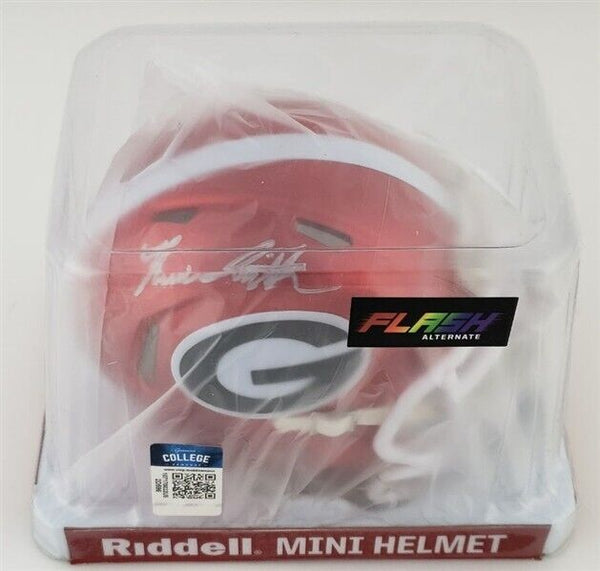 This autographed Riddell Flash Alternate Speed mini helmet has been personally hand-signed by Nolan Smith Jr of the Georgia Bulldogs (Philadelphia Eagles).This autograph is certified by James Spence Authentication (JSA)....