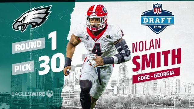 This autographed custom on-field style jersey has been personally hand-signed by Nolan Smith Jr. of the Philadelphia Eagles.