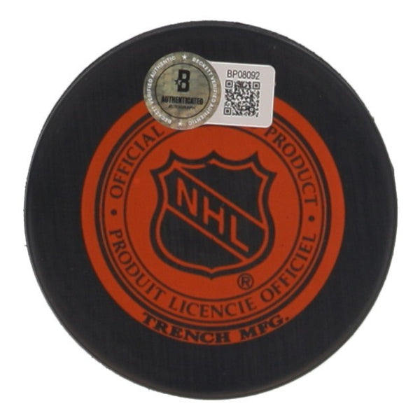 Detroit Red Wings logo hockey puck. Hand-signed by Norm Ullman (HOF). The autograph includes an official Beckett Authentication Services serially numbered hologram and QR Code card for authenticity purposes.Authentication: Beckett...