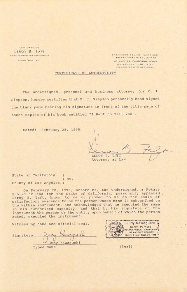 "I Want To Tell You" hard-cover book has been hand-signed by O. J. Simpson (Buffalo Bills, HOF).