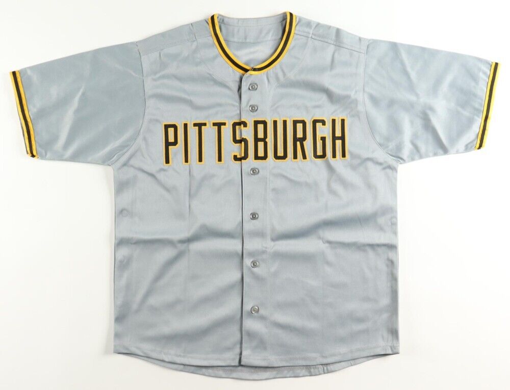 Custom on-field style jersey. Everything is sewn on, size adult XL. Hand-signed by Oneil Cruz.