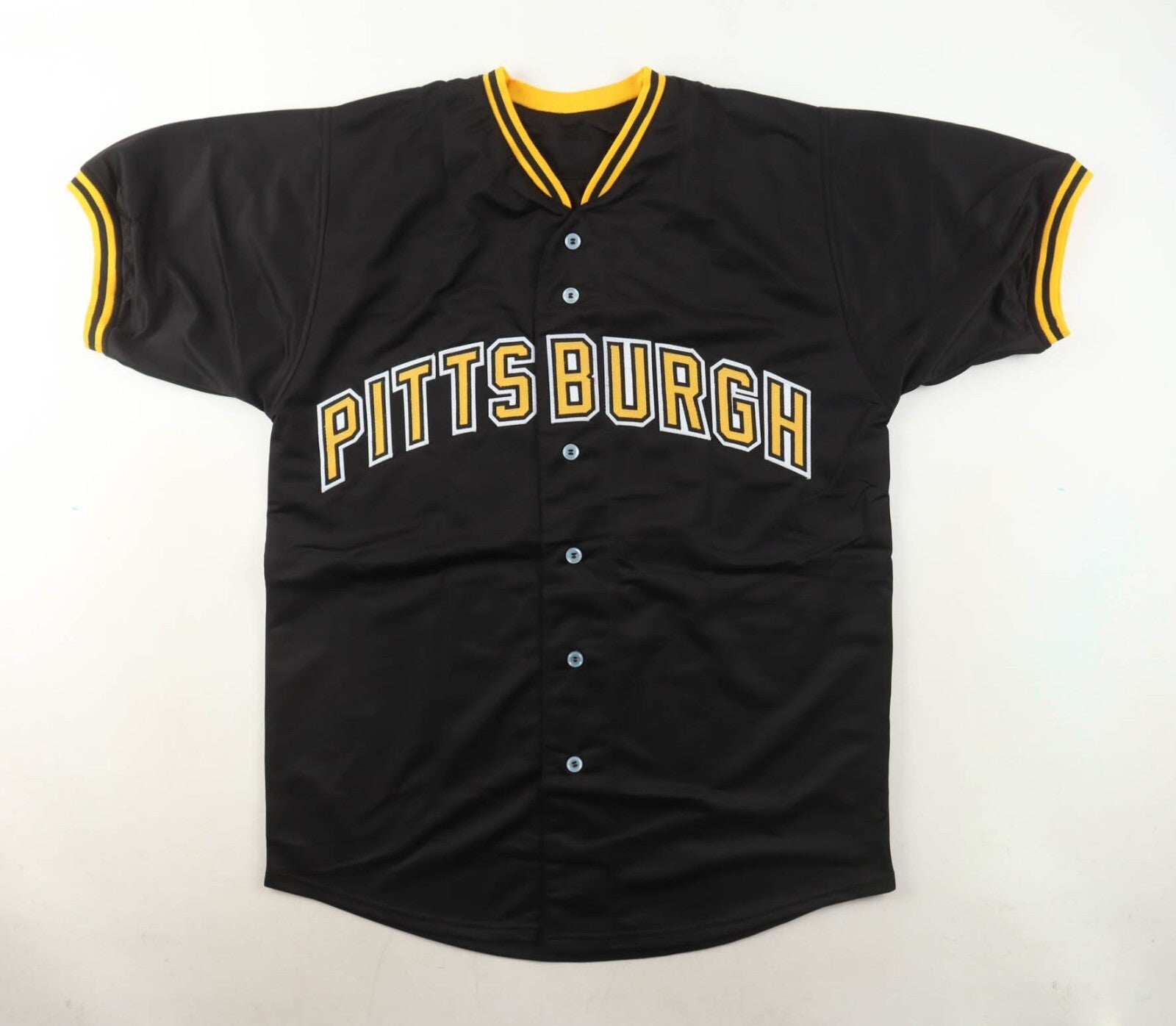 Custom on-field style jersey. Everything is sewn on, size adult XL. Hand-signed by Oneil Cruz.