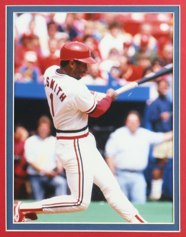 Custom frame display measures approximately 32" x 36" in size and features a jersey and a cut that has been hand-signed by Ozzie Smith (HOF). The display also includes a...